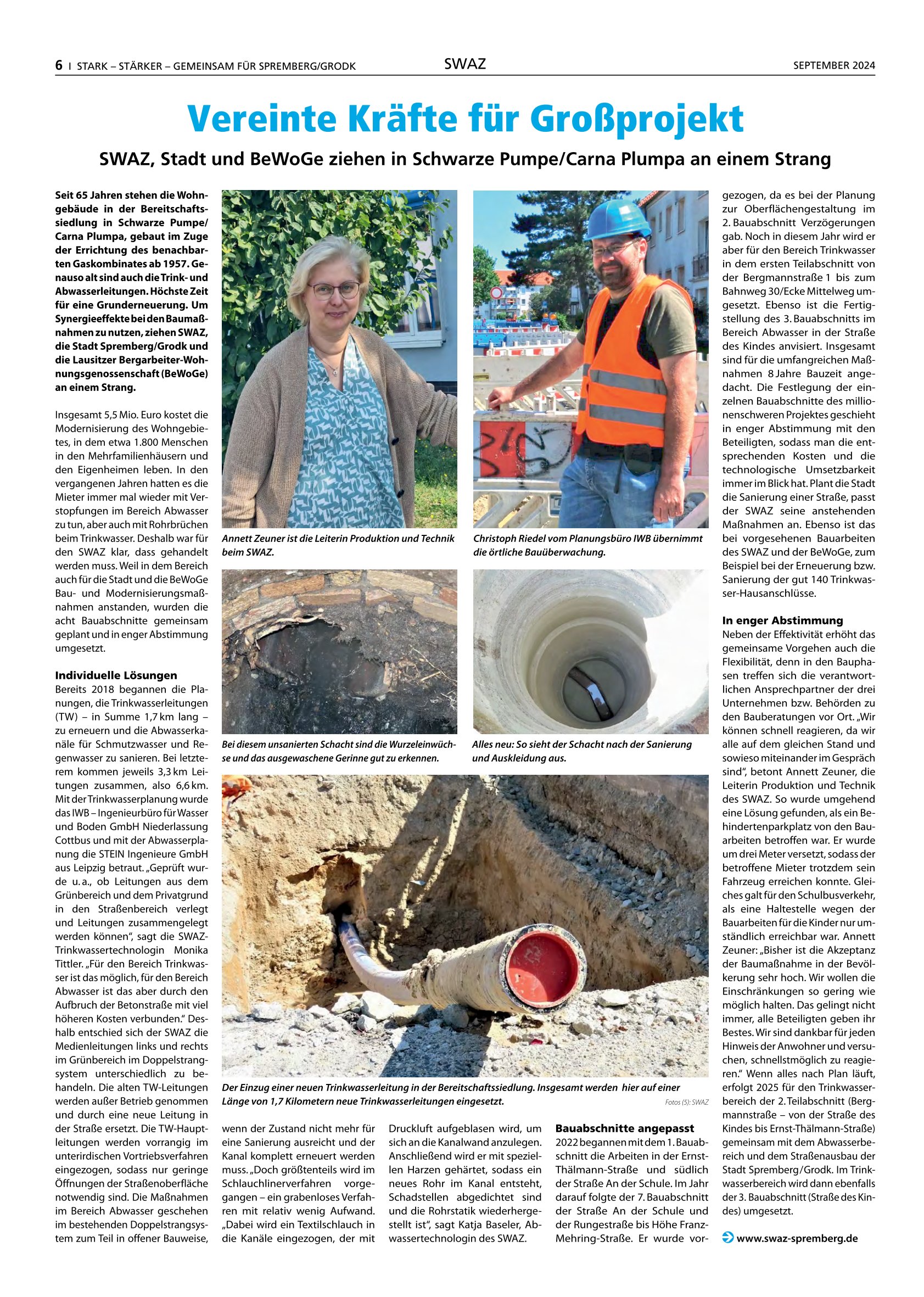 In der Zeitschrift der Stadt Spremberg/Grodk ist ein Artikel zu unserem Projekt "Erneuerung der Trinkwasserleitungen in der Bereitschaftssiedlung Schwarze Pumpe / Spremberg" erschienen.
