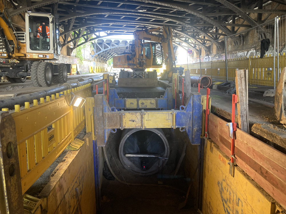 - Neubau MWK DN 1400 Polymerbeton (PRC) auf einer Länge von ca. 90 m mit Unterquerung einer Eisenbahnüberführung (DB AG)