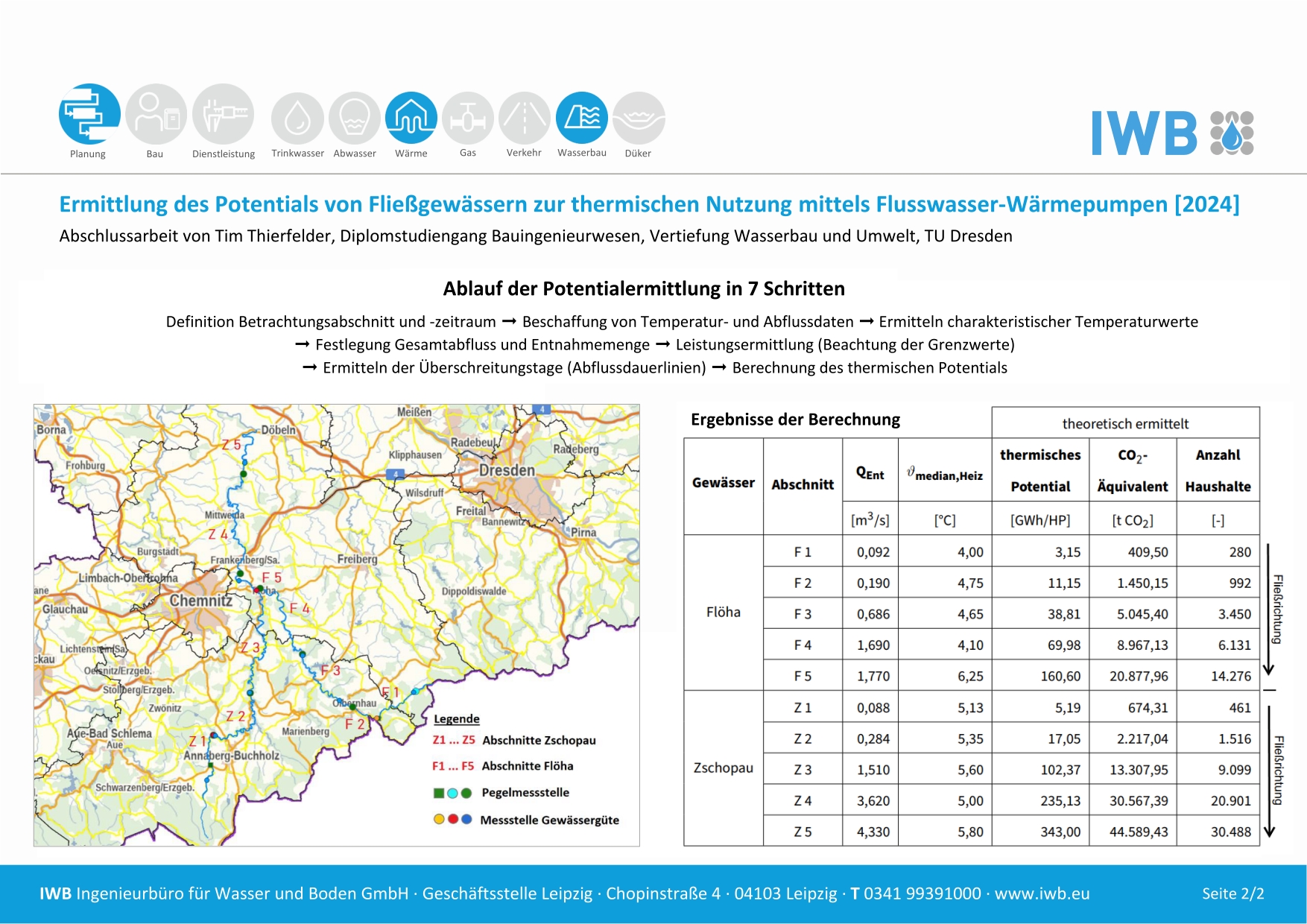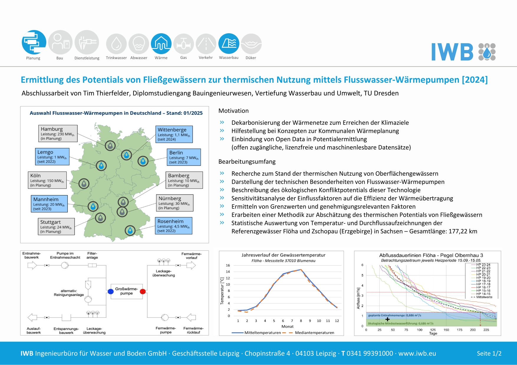 Im Falle der Nutzung von Fließgewässern als Wärmequelle stellt die Entwicklung einer Methodik zur qualitativen und quantitativen Bestimmung des Wärmenergiepotentials mittels Flusswärmepumpen einen essentiellen Bestandteil für künftige Planungsprozesse dar.