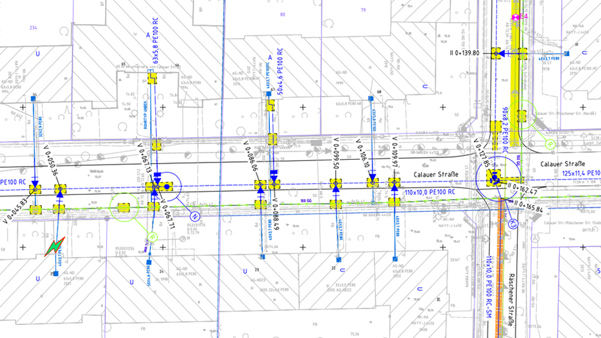 Die Dimensionen der Bestandsleitungen liegen bei DN 80 und DN 100 GG. Der Neubau erfolgt in PE100RC in den Dimensionen 125x11,4, 110x10,0 und 90x8,2. Die Gesamtlänge der betroffenen Versorgungsleitungen beträgt 920 m.