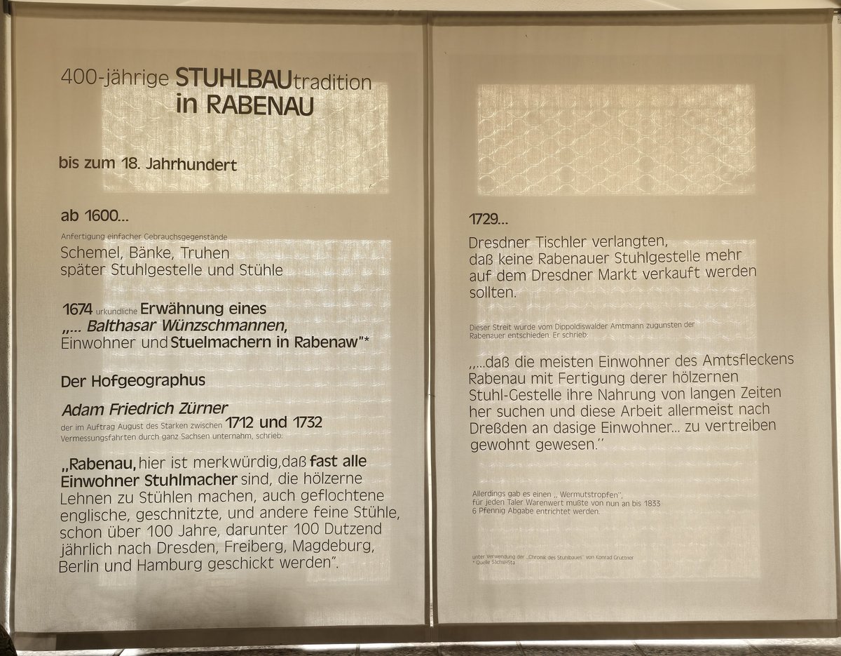 Nach einem Mittagsimbiss besuchten wir das Stuhlbaumuseum in Rabenau. Mehr als 400 Jahre Stuhlbauertradition werden hier sehr anschaulich vorgestellt. In einer sehr interessanten Führung wurden uns die verschiedenen Arbeitsschritte dieser Handwerkskunst demonstriert.
