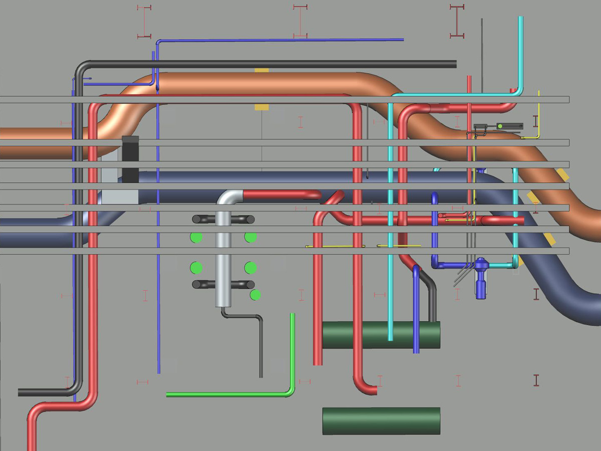 - Fernwärmeanschluss 2 x DN 700 im Keller des Blocks 8 an das zentrale Primärnetz der MVV